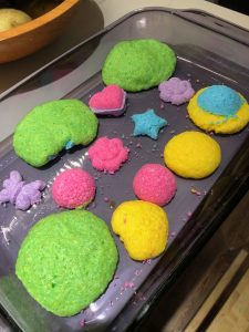 Now, pre-quarantine Lolo would have had a FIT over the amount of mess, over the lack of impulse control and disregard for precise measurements. Quarantine Lolo is much... cooler. She knows that if Bobo doesn't care if the bath bombs are not properly shaped and if the yellow is foaming over, then why should she?